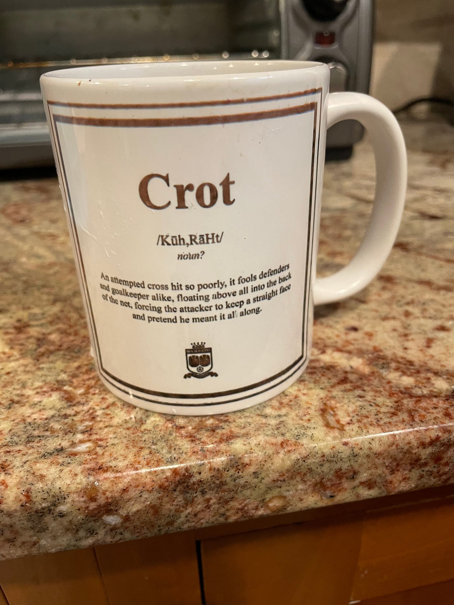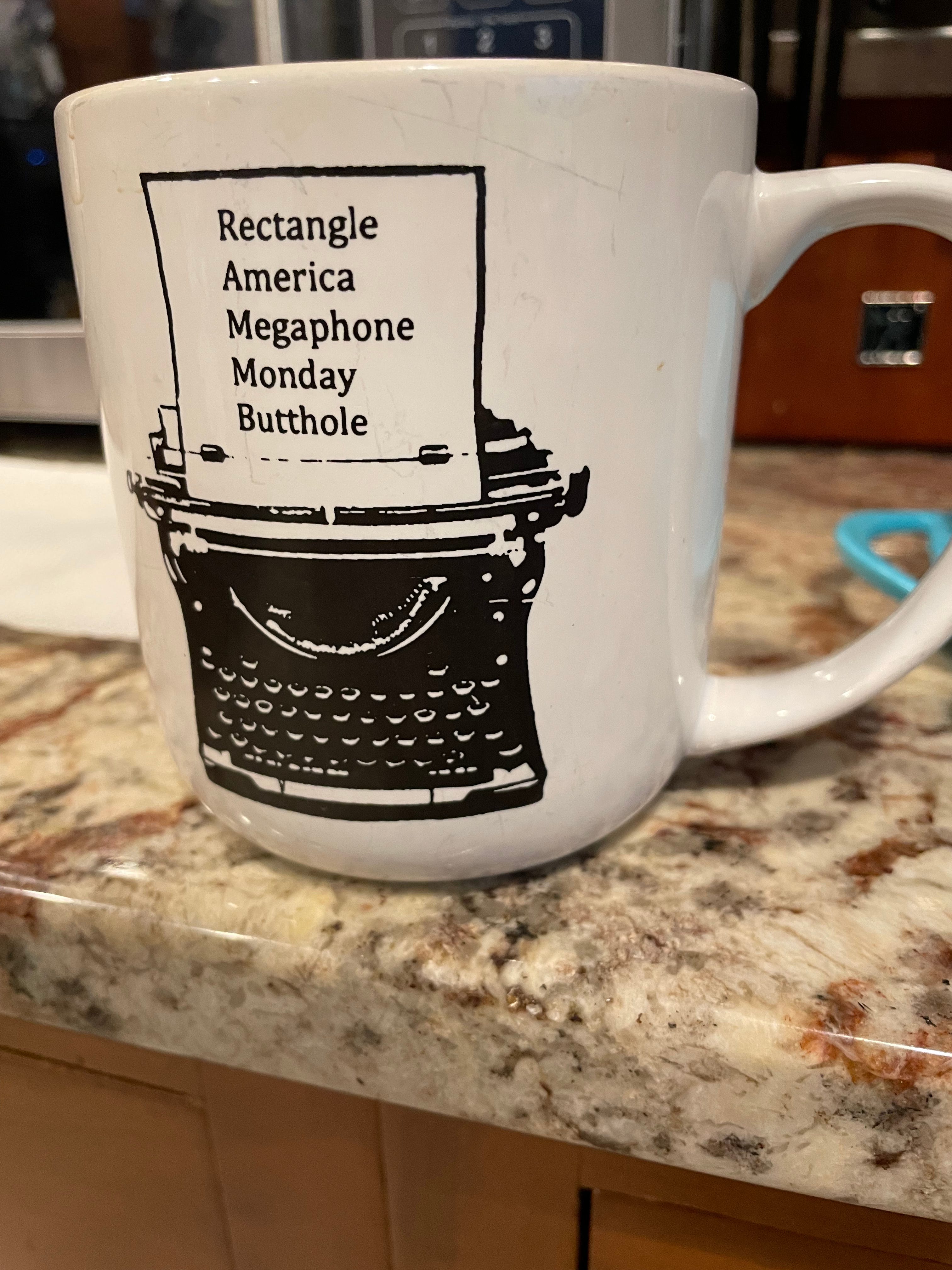 (8) At least two — and maybe more — mugs on this list were either birthday or Christmas gifts from my Caryn’s sister’s family. Although I say with no disrespect to my brother in-law, I suspect it’s my sister in-law who is doing the bulk of the gift shopping. The mug is a reference to a popular soccer podcast called Men In Blazers that she (correctly) guessed that I like. It’s a very solid mug, though a lack of heft and sturdiness keeps it in the back half of the top-10.