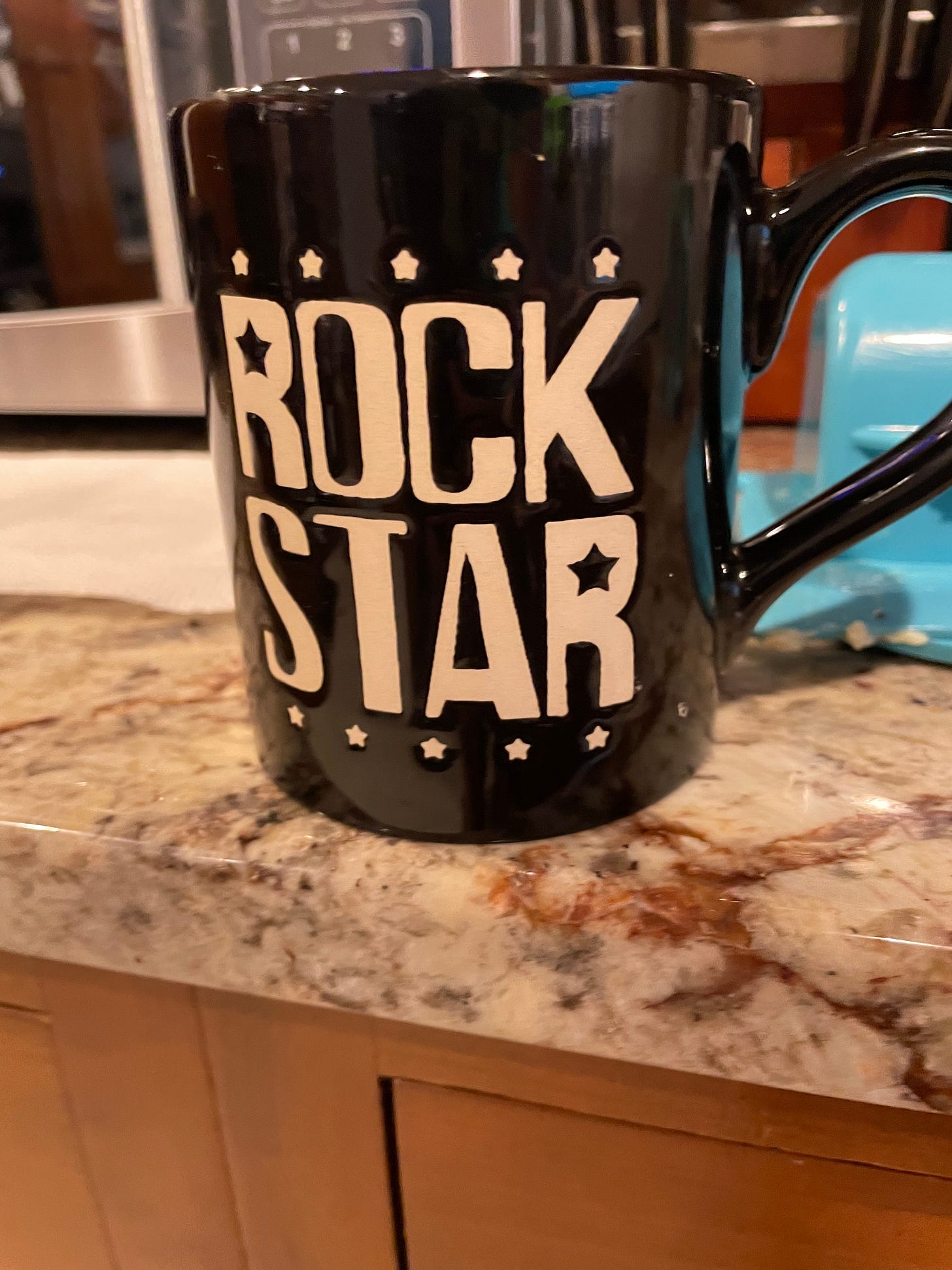 (14) Similarly, I am not a rock star. I have no rock star tendencies. I believe this came in a set with a smaller rock star mug that Rory uses. He has rock star tendencies. I feel unworthy of this mug.