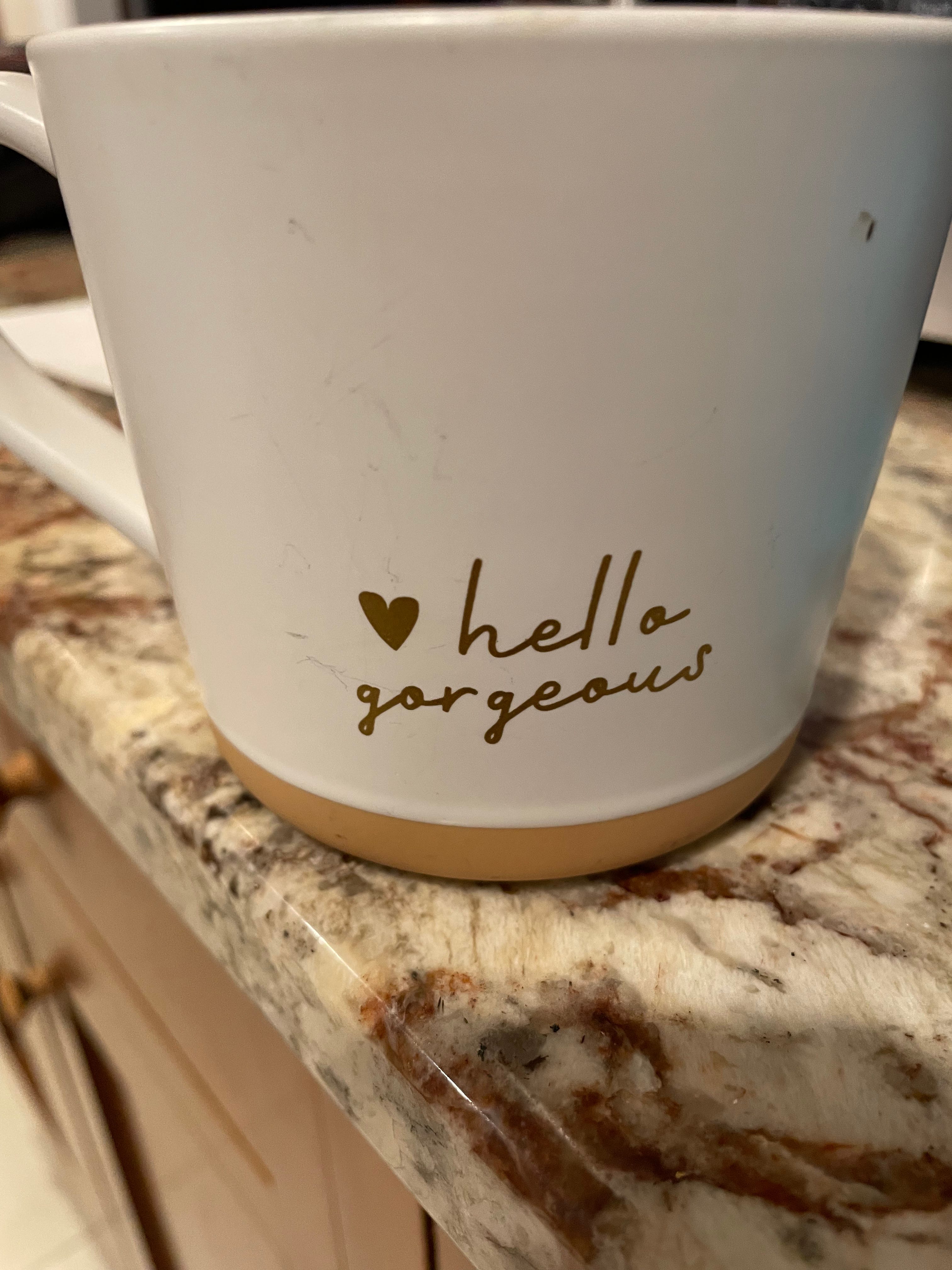 (15) I believe a friend gave this mug to Caryn. It’s a fine quality, but I do not feel comfortable drinking out of it. There has never been a single moment in my life in which I have felt, or been called, gorgeous. Let’s move on again.