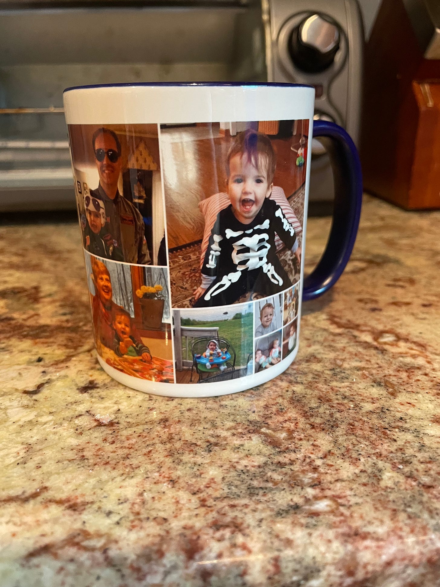 (12) A very nice mug featuring pictures of my eldest child and other family. Unlike a mug that will appear later in this countdown I have no memory of when this mug came into our house. It’s a perfectly good mug, but it feels a little flimsy to me which knocks it down a few points. Also the only mug we have which has a different color on the inside and handle than the exterior of the mug. Which doesn’t add points, but interests me nonetheless.