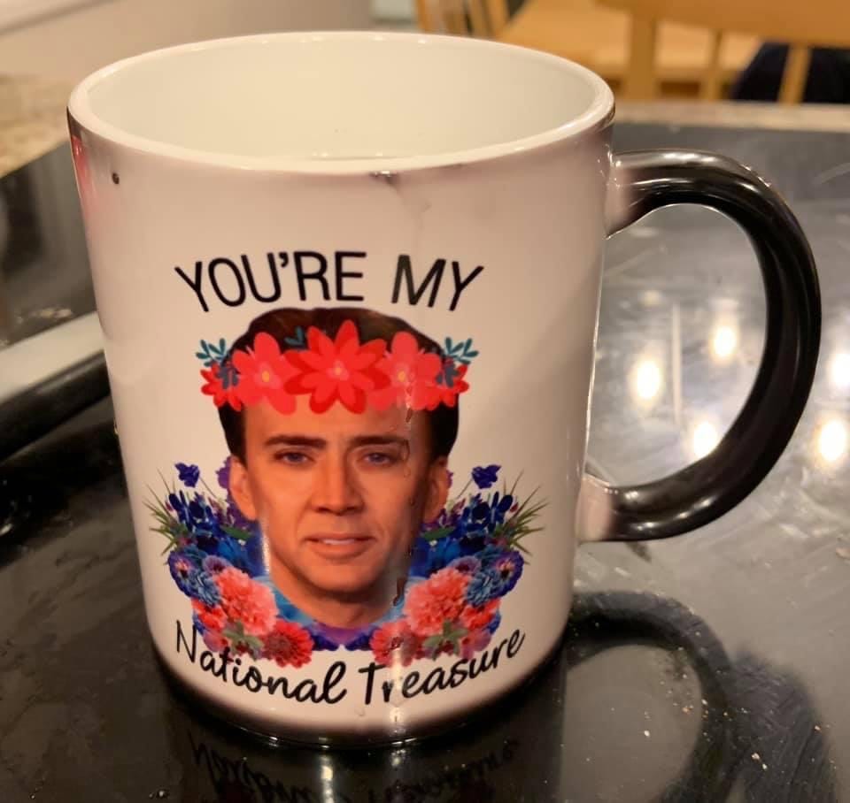 (2) Time for a peak behind the curtain. This mug inspired this entire exercise. I love this mug. Caryn gave me this mug for my birthday many years ago, and it is an absolute delight. One morning when enjoying coffee with this mug, I internally debated whether this was my favorite mug. In the end, I determined it is my second-favorite mug, which I think is still high praise. It’s a pretty typical mug in terms of feel, but the Nicholas Cage imagery is next level. It’s also a heat-changing mug, so the beautiful visage of Mr. Cage only appears when hot beverage is added. I’m picking nits for why the mug that follows and not this one earns the top spot, as it is virtually flawless. I love this mug, I just love the next one a little more.